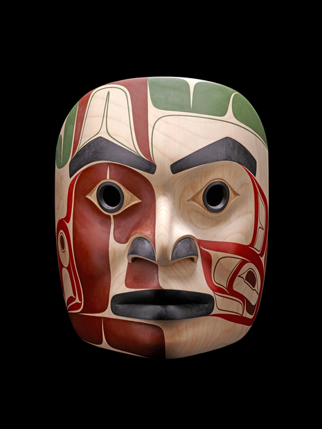 «Selon le savoir de nombreux peuples autochtones, humains et non humains ont la responsabilité réciproque d’entretenir des relations basées sur le respect et l’interdépendance.» Pour éviter les crises, l’équilibre entre les hommes, les plantes et les animaux doit donc être maintenu. Une des œuvres exposées illustre bien ce propos du temps de la responsabilité réciproque. Elle part d’un conte traditionnel ts’msyen revisité par le poète Gavin Hudson -Huk Tgini’itsga Xsgyiik de son nom ts’msyen- et le sculpteur David Robert Boxley -Gyibaawm Laxha- dans lequel un prince est enlevé par un saumon… Quatre personnages s’y donnent la réplique: le prince, le cèdre, la rivière et le saumon. Tous sont représentés par un masque en bois de cèdre précieux, au creux duquel le visiteur est invité à lover son visage pour adopter, tour à tour, le point de vue de chacun. Les masques originaux créés pour l’occasion selon la tradition sont époustouflants et convertiraient à la défense de la biodiversité, par leur simple beauté, nombres de petits occidentaux urbains.