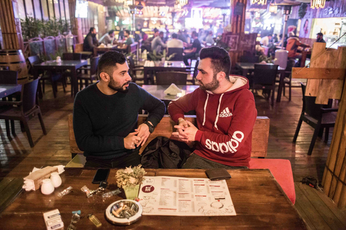 Leyth parlant avec un ami lors d'une soirée passée au Babylon Community, club d’Ainkawa © Giacomo Sini